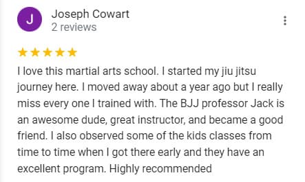 We are immensely grateful for every 5-star review we get. It’s a reflection of our team’s dedication to making our school environment and every single class a 5-star, world-class experience. Those 5 stars help us continue to make a difference in our community through the power of martial arts- couldn’t live without them.